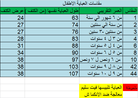 مقاسات من 8 شهور حتى 10 سنوات