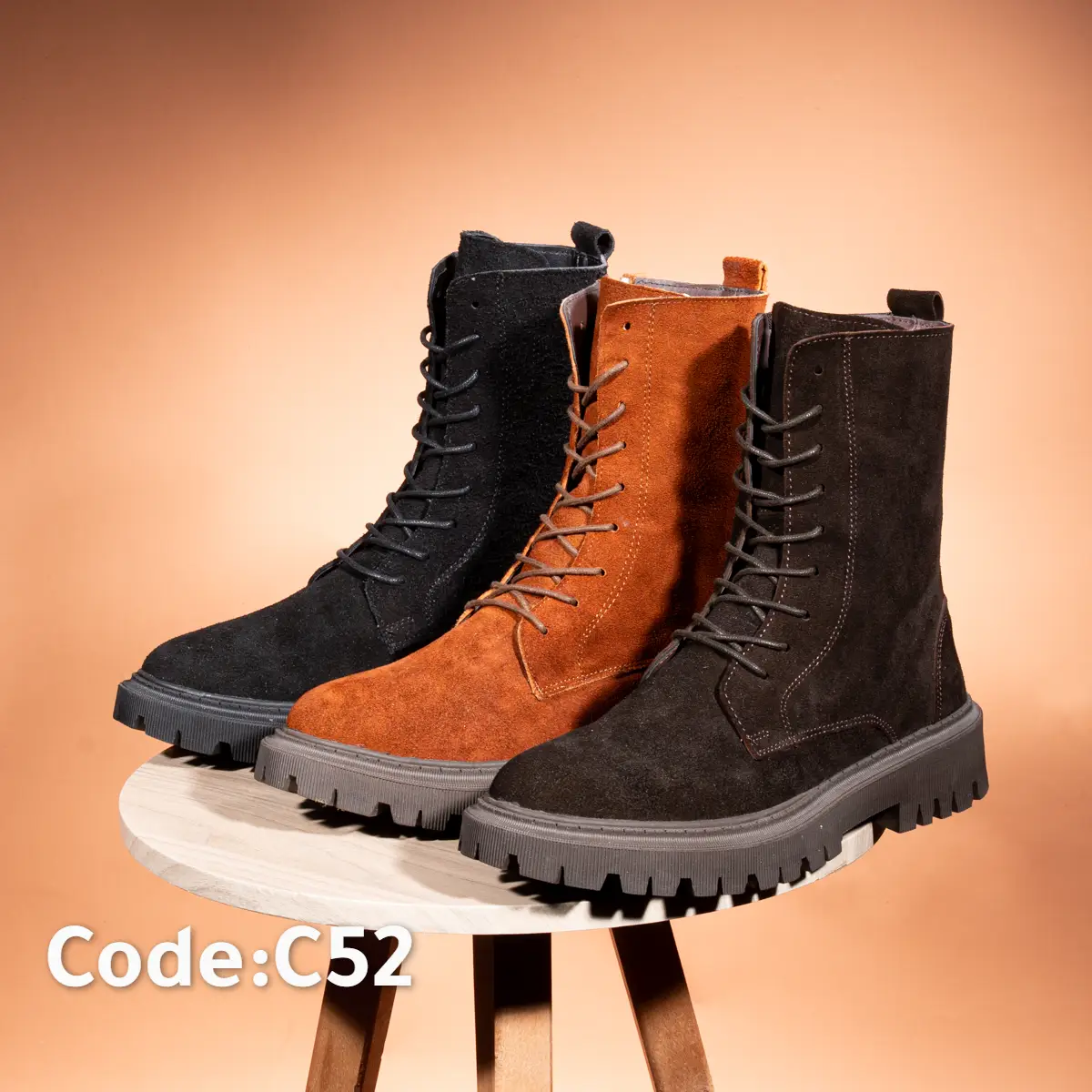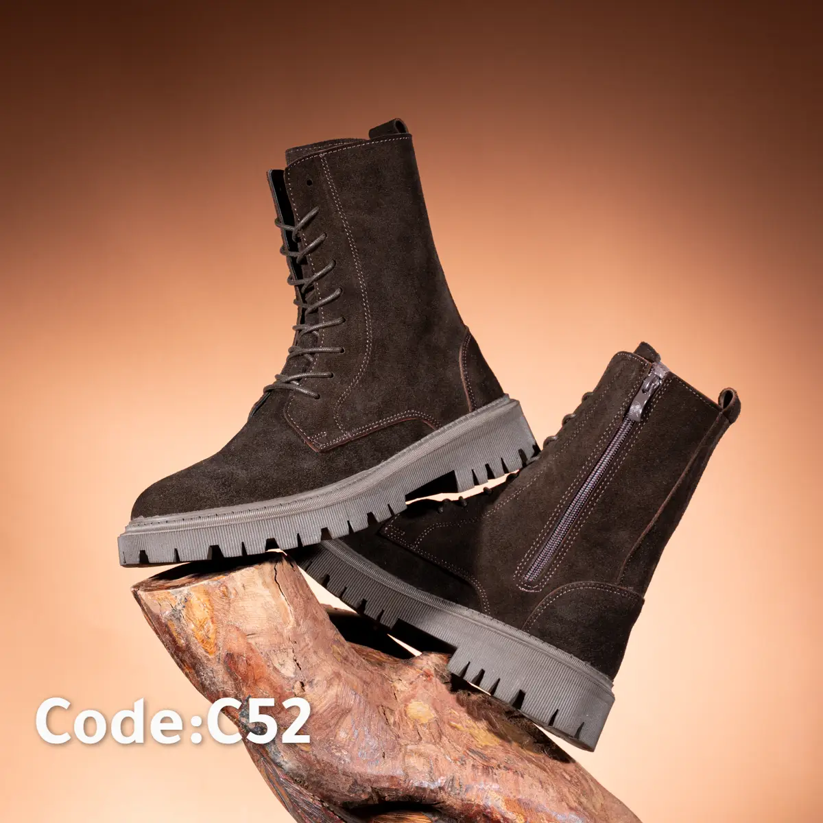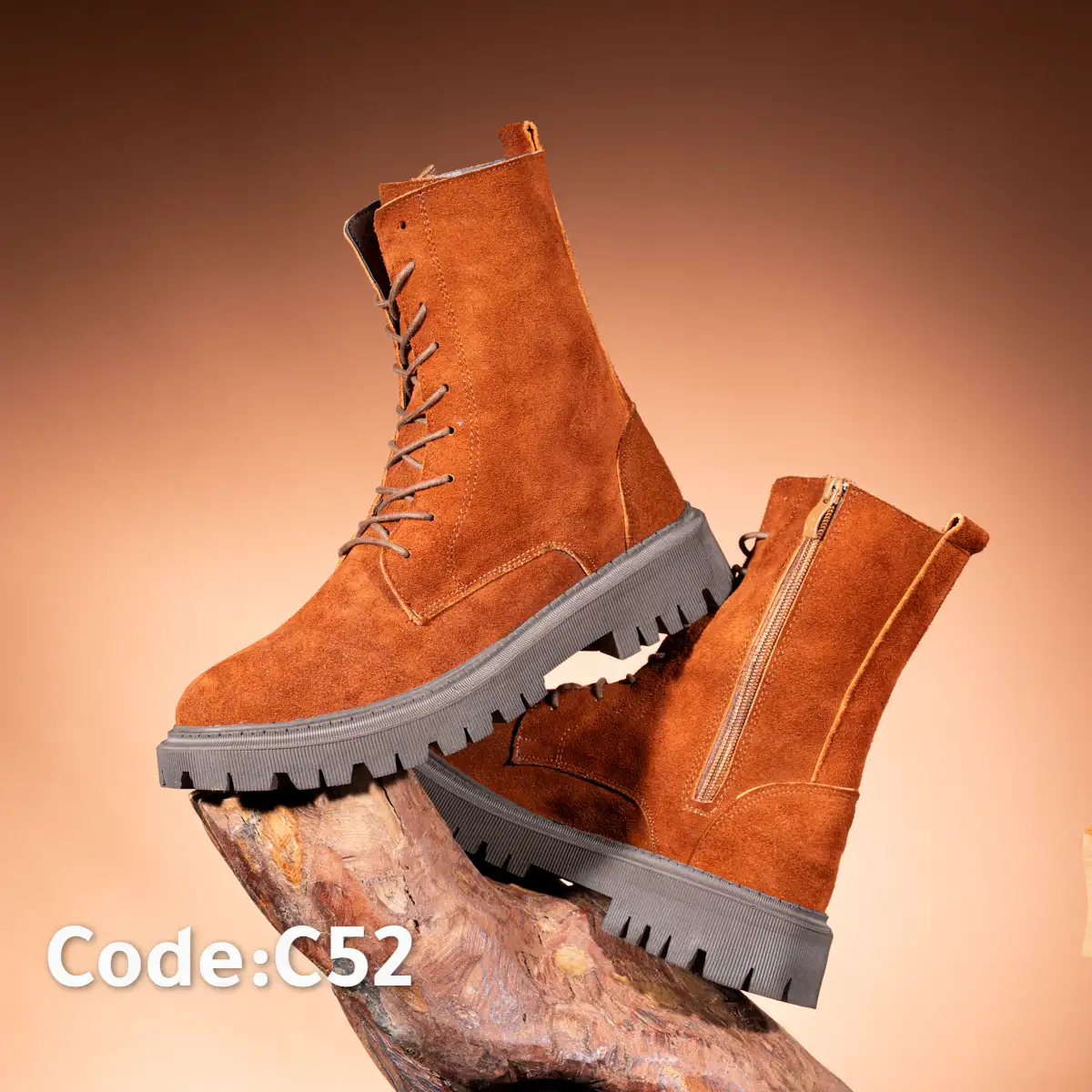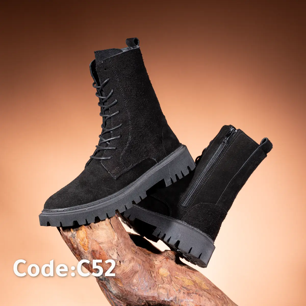 بوت جلد طبيعي شمواه ناعم رباط أمامي + سوستة جانبية